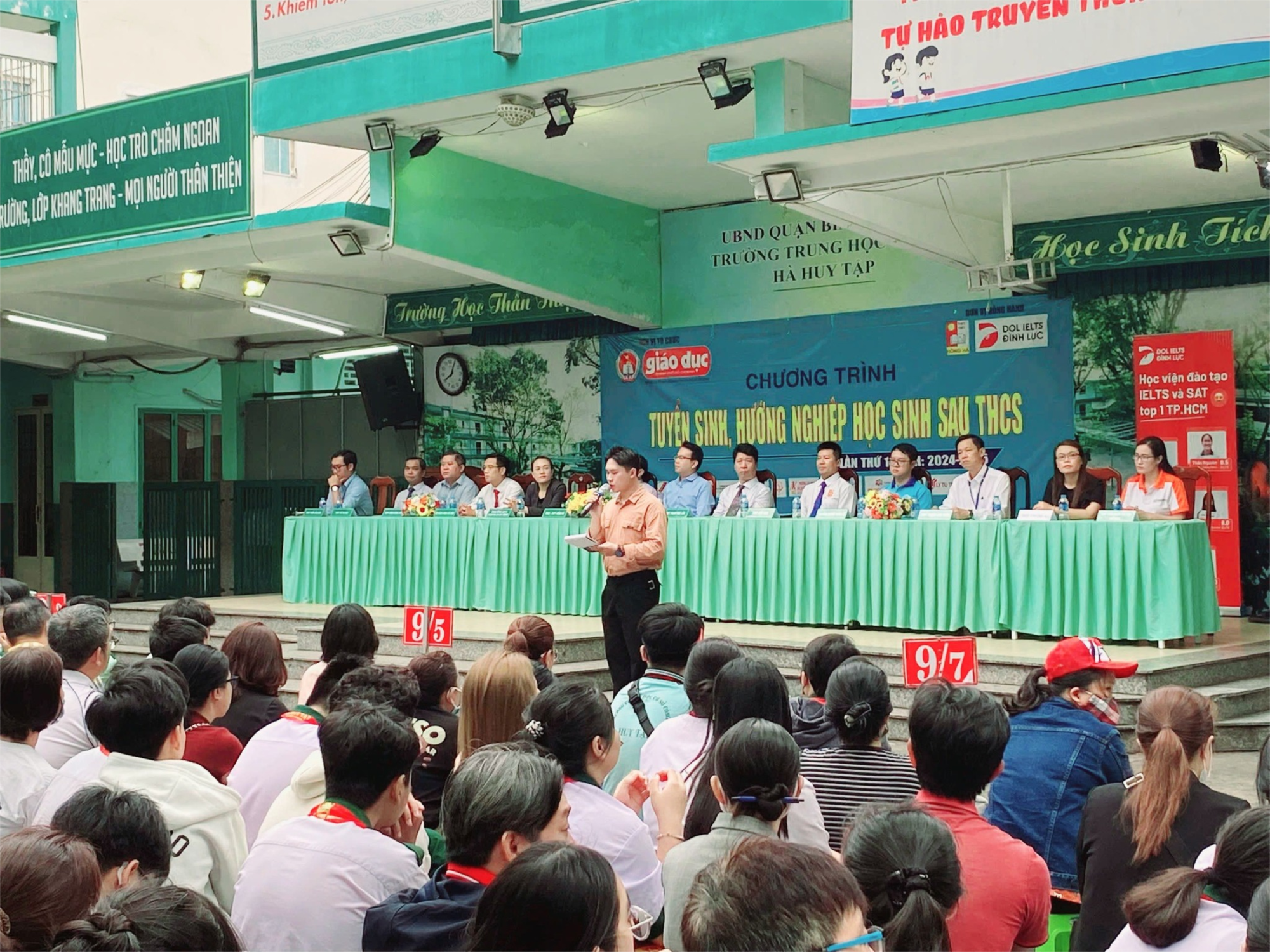 Sáng 15/02/2025, Chương trình tuyển sinh, hướng nghiệp học sinh sau THCS diễn ra tại Trường THCS Hà Huy Tập gồm các trường trong Ban Tư vấn như sau: